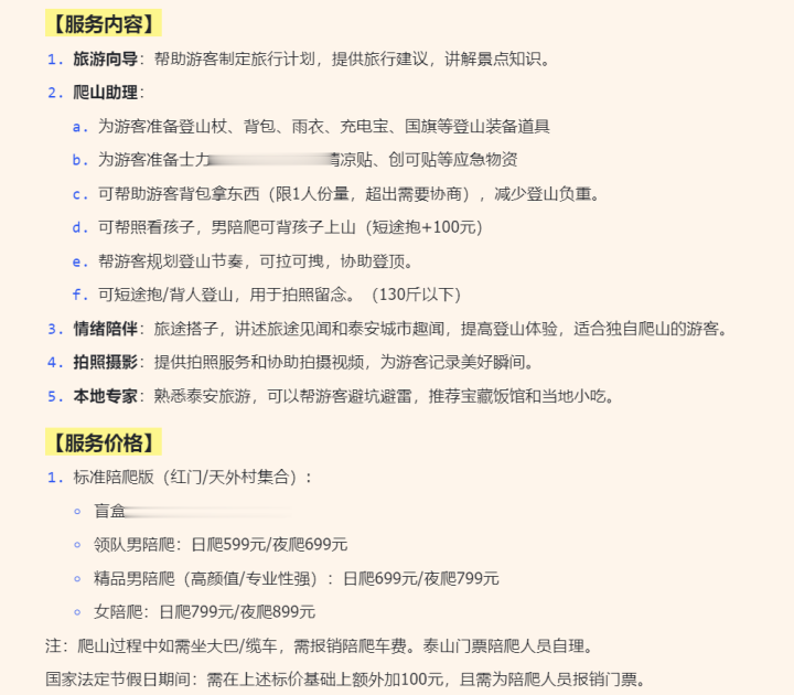 今年3月,有泰山陪爬从业者对媒体表示,全职陪爬一年收入近30万元,引发了广泛讨论。一次陪爬,收入几百元到千元不等,行业正吸引着更多人涌入。